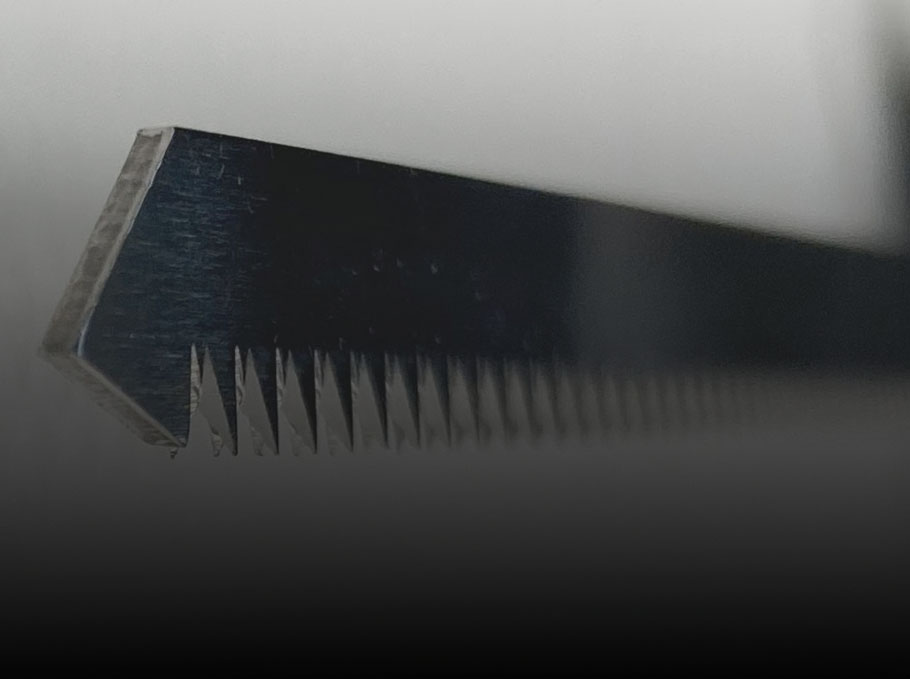 - Verzahnte, rutschfeste Klingen für sicheres und gleichmäßiges Schneiden